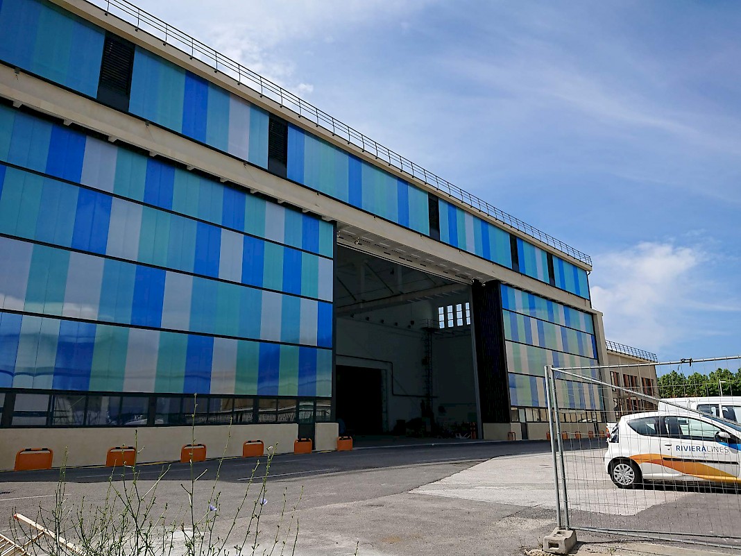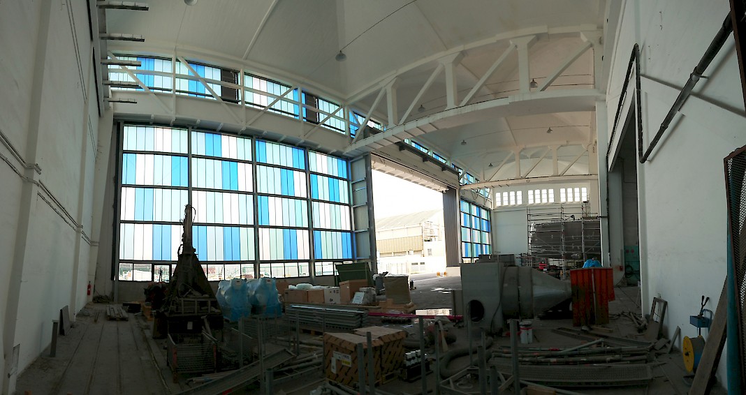 Le projet concerne la rénovation des hangars des années 1930 disposant de 12 grandes coupoles de béton, un chef d’œuvre du patrimoine et de l’ingénierie du début du XX ème siècle. Nous avons rénové ce bâtiment, pour créer des bureaux et réaménager le chantier naval, pour crer des lieux de travail lumineux et confortables.